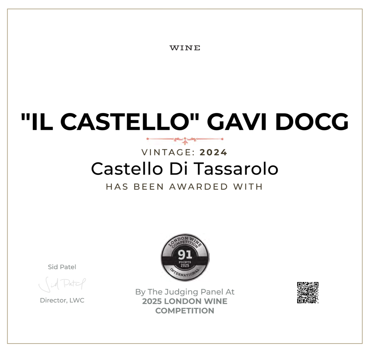 Certificate for Berliner Gold 2022 awarded to Chardonnay DOC Collio from Italy, signed by officials, with a grayscale image of the Brandenburg Gate in Berlin.